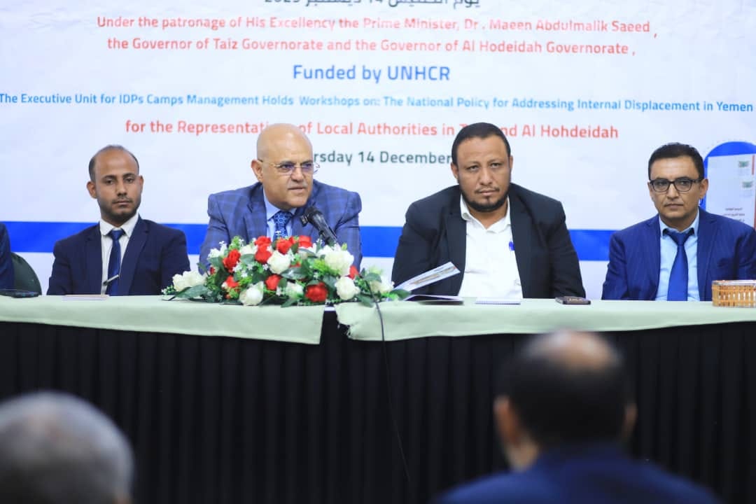 دشن محافظ محافظة تعز نبيل شمسان اليوم ورشة حول السياسة الوطنية لمعالجة النزوح الداخلي في اليمن والذي نظمتها الوحدة التنفيذية لادارة مخيم النازحين بمشاركة ممثلي السلطة المحلية بمحافظتي تعز والحديدة برعاية دولة رئيس الوزراء الدكتور معين عبدالملك ومحافظي محافظتي تعز والحديدة، بتمويل من المفوضية السامية لشؤون اللاجئين.