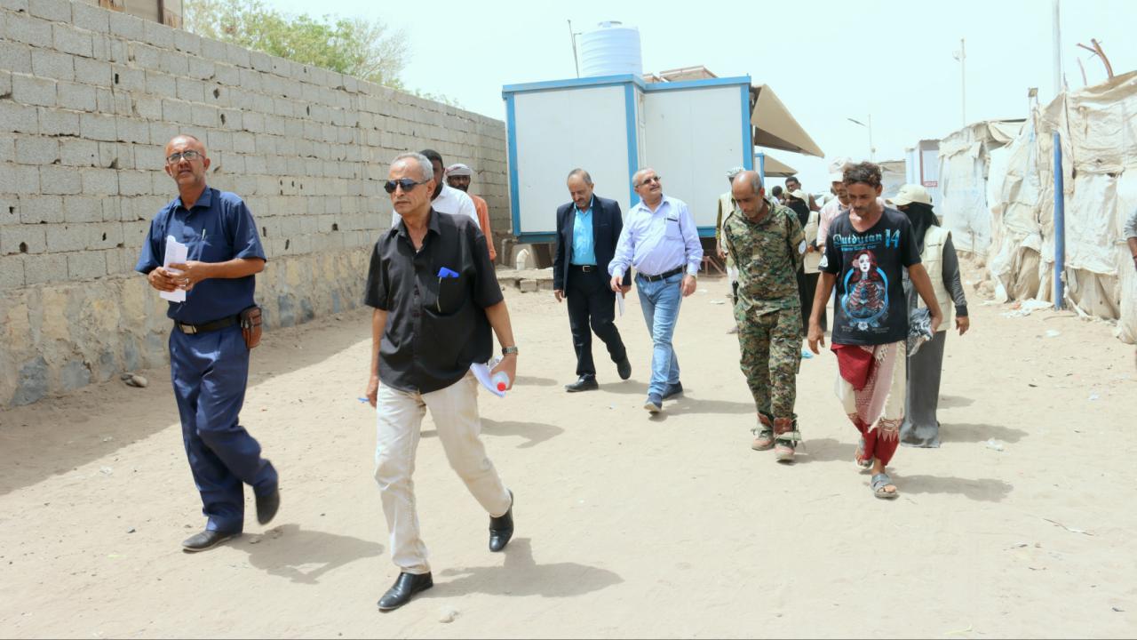 فريق حكومي يزور مخيمات النازحين في لحج ويثني على جهود الوحدة التنفيذية